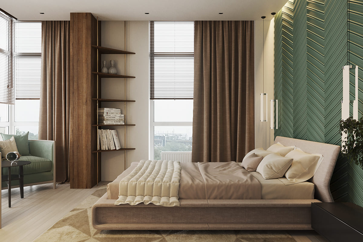 Phòng ngủ được thiết kế với không gian gọn gàng vừa đủ là không gian tuyệt vời cho các gia đình muốn có một không gian riêng tận hưởng cùng nhau sau những giờ làm việc mệt mỏi.